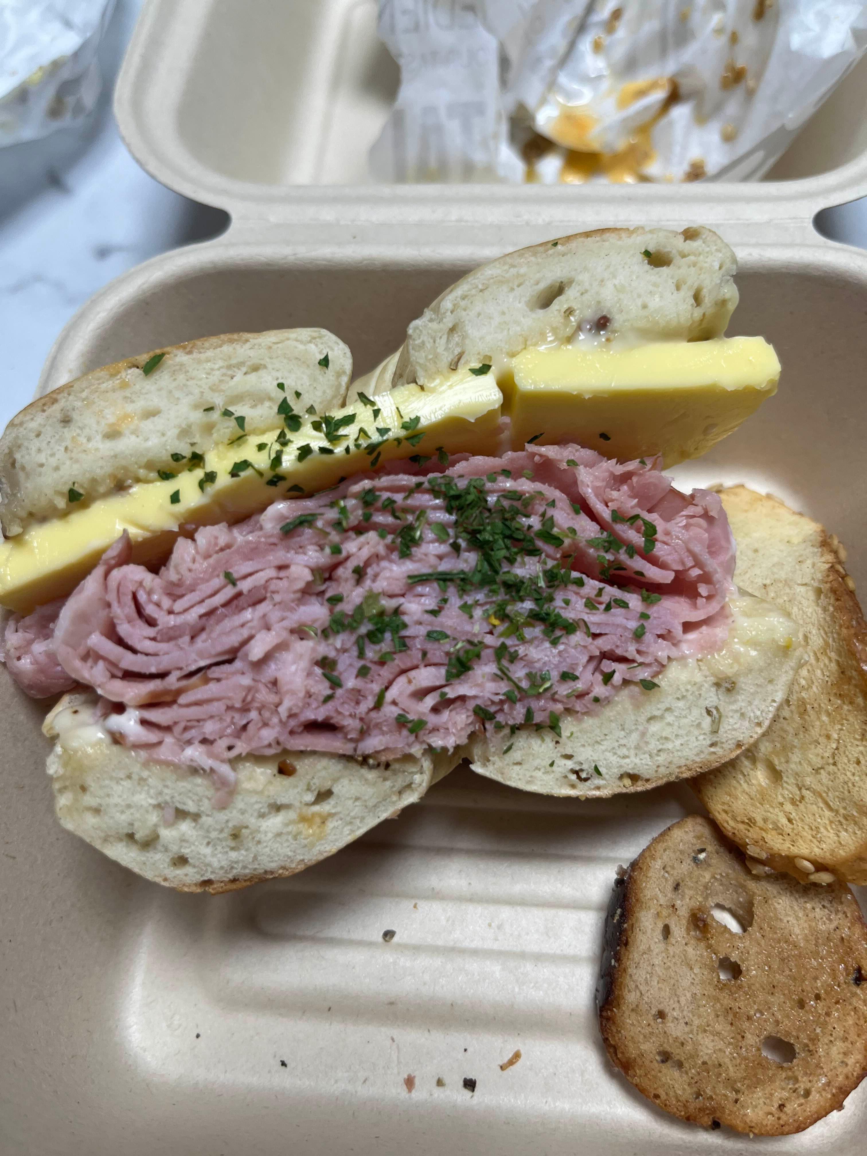 잠봉뵈르 베이글입니다. 저는 치폴레가 더 맛있다고 했는데 그렇다고 이게 맛이 없는 것은 아니에요! 남자친구는 햄이 많이 들어가서 이게 더 좋다고 하더라고요. 그냥 취향차이!!