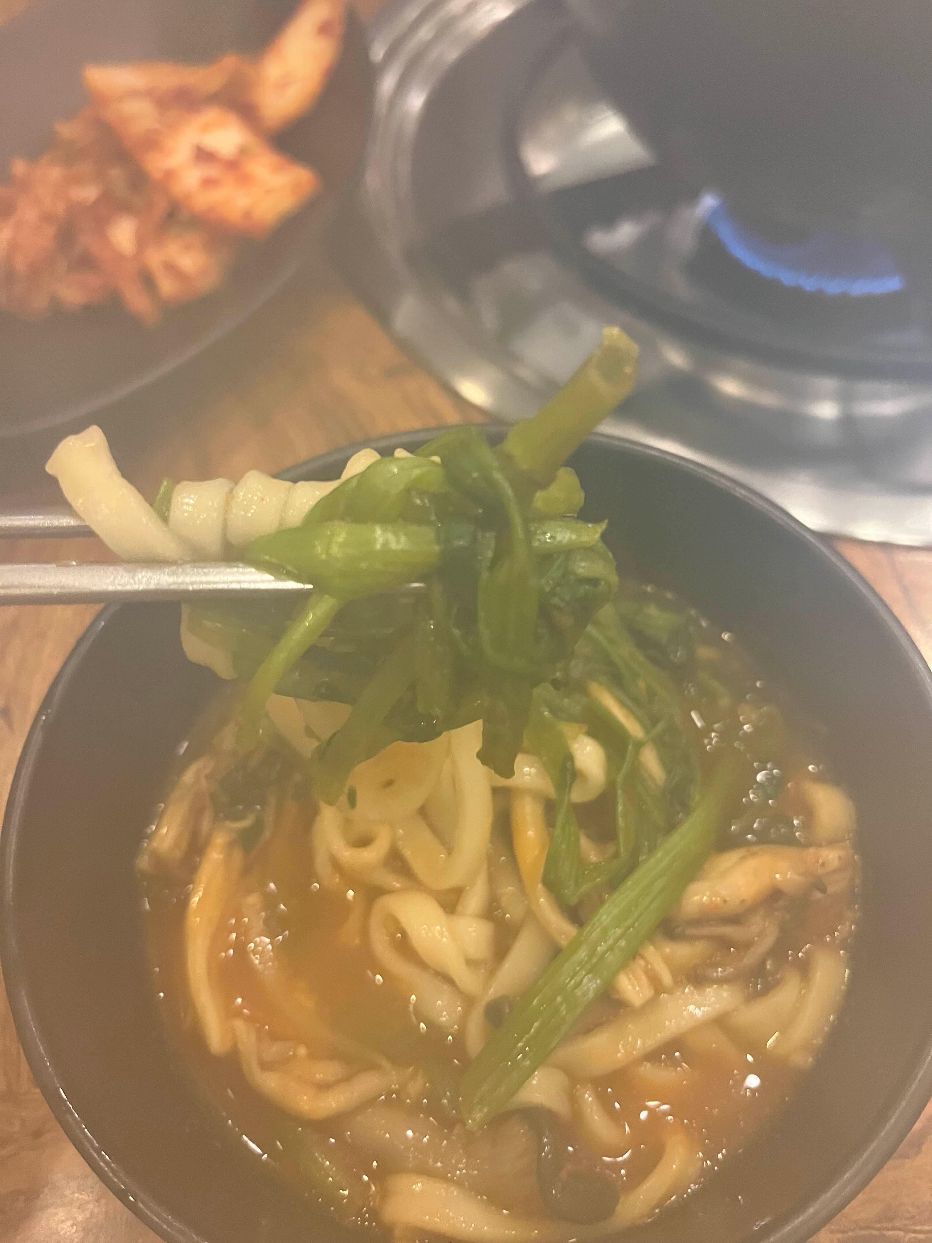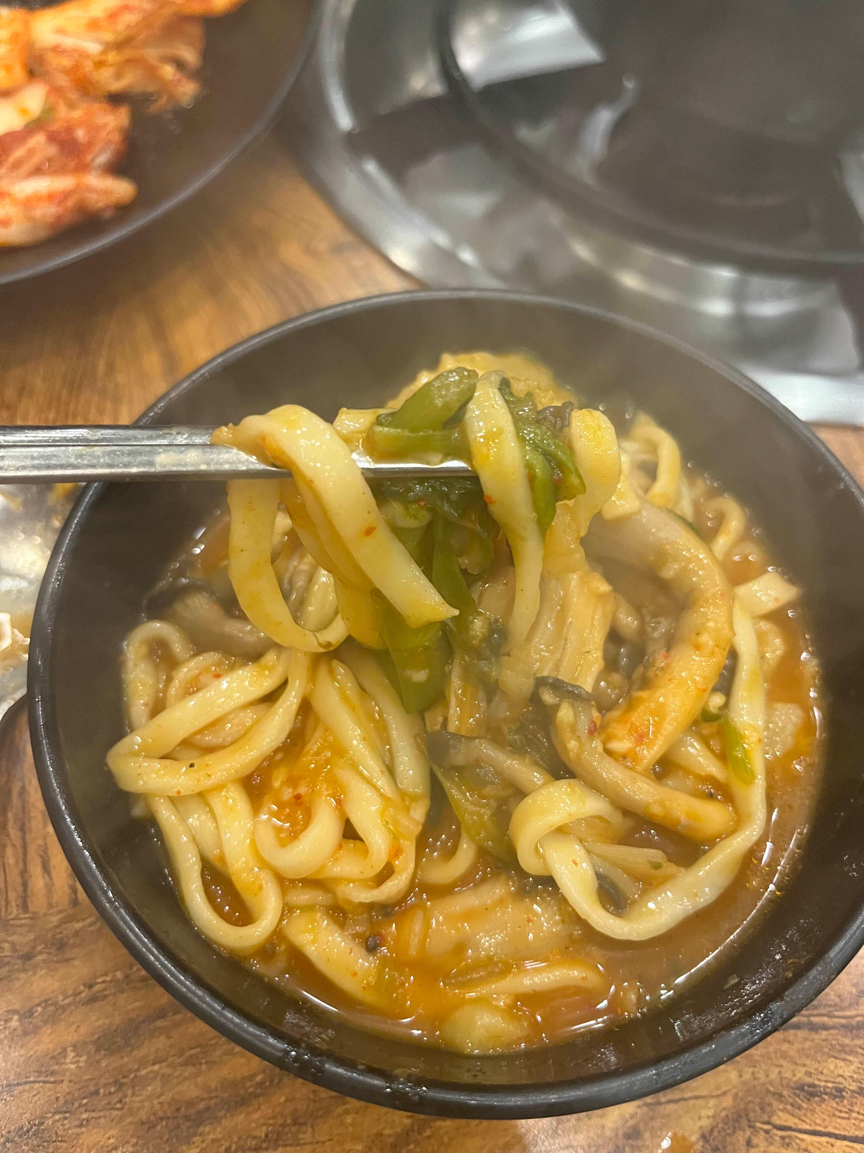이 날따라 고기가 별로 안땡겨서 얼큰 샤브칼국수에 만두사리만 추가했는데 그래서인지 양은 엄청 배부르지는 않았던 것 같아요.